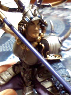 仕方ないから、上腕のあたりにそっと槍を乗せて、手で支えつつ写メってみた。