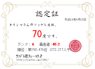 <キリシマさんのツンデレ度は、 70 度です。
